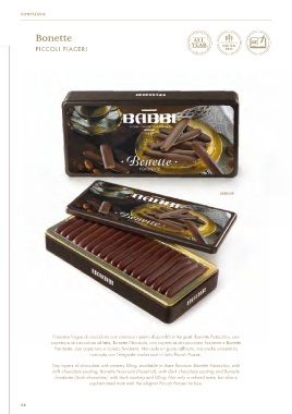 Tiny layers of chocolate with creamy filling, available in three flavours: Bonette Pistacchio, with