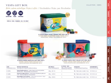 01.03754 VESPA PASTILLES GIFT BOX 250 G 01.03855 VESPA FRUIT JELLIES GIFT BOX 200 G FOR SHARING À PARTAGER-ZUM TEILEN
