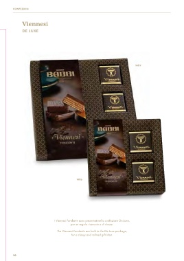 conFeZioni Viennesi DE LUXE 14119 14116 I Viennesi Fondente sono presentati nella confezione De Luxe, per un regalo ricercato e di classe. The Viennesi Fondente are held in the De Luxe package, for a classy and refined gift idea. 20
