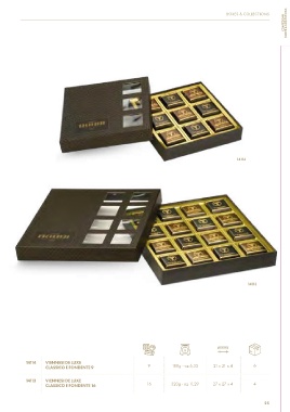 BOXES & COLLECTIONS conFeZioni BoXeS & collectionS 14114 14113 14114 VIENNESI DE LUXE CLASSICO E FONDENTE 9 9 180g - oz 6,35 21 x 21 x 4 6 14113 VIENNESI DE LUXE CLASSICO E FONDENTE 16 16 320g - oz 11,29 27 x 27 x 4 4 25
