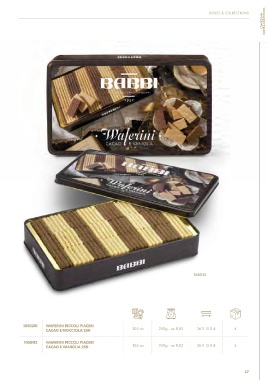 BOXES & COLLECTIONS conFeZioni BoXeS & collectionS 1050112 1050201 WAFERINI PICCOLI PIACERI CACAO E NOCCIOLA 250 105 ca 250g - oz 8,82 26 X 15 X 4 4 1050112 WAFERINI PICCOLI PIACERI CACAO E VANIGLIA 250 105 ca 250g - oz 8,82 26 X 15 X 4 4 37