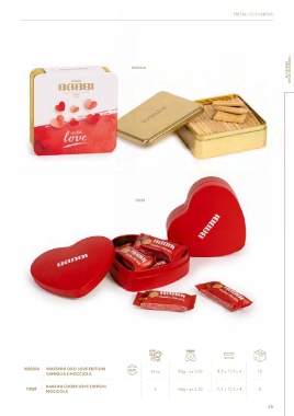 SPECIAL OCCASIONS ricorrenZe SPecial occaSionS 1050214 11059 1050214 WAFERINI ORO LOVE EDITION NEW! 34 ca 80g - oz 2,82 11,5 x 11,5 x 4 10 VANIGLIA E NOCCIOLA BABBINI CUORE LOVE EDITION 11059 6 66g - oz 2,33 11,5 x 12,5 x 4 8 NOCCIOLA 79