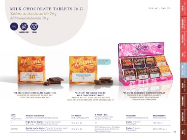 *04.04238 MILK CHOCOLATE TABLET 40% *04.04611 NO ADDED SUGAR *04.04708 ASSORTED COUNTER DISPLAY