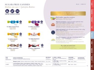 *01.00895 EUCALYPTUS *01.00897 BLUEBERRY Kaloriengehalt im Vergleich zu herkömmlichen Zuckern erheblich. BULK VRAC - LOSE