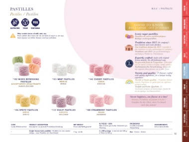 *102 MIXED REFRESHING *101 MINT PASTILLES *142 CHERRY PASTILLES Variété et haute qualité : 19 parfums élaborés