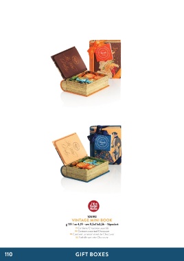 105192 VINTAGE MINI BOOK g 119 / oz 4,19 - cm 9,5x11x3,5h - 16pcs/crt IT Contiene Chocoviar assortiti EN Contains assorted Chocoviar FR Contient un assortiment de Chocoviar DE Enthält sortierte Chocoviar 110 GIFT BOXES GIFT BOXES 111