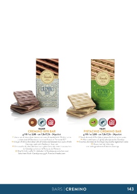 tra due strati di Gianduia al latte con Nocciole Piemonte IGP EN Alternated layers of lightly salted pistachio Gianduja
