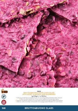 IT Lastra di cioccolato bianco al profumo di rosa con croccante granella di mandorle tostate e lampone IT Lastra di cioccolato al pistacchio leggermente salato con pistacchi interi croccanti
