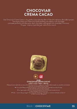 contrasts perfectly with the extra-dark chocolate coating and milk chocolate Chocoviar.